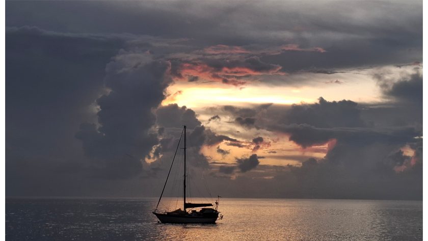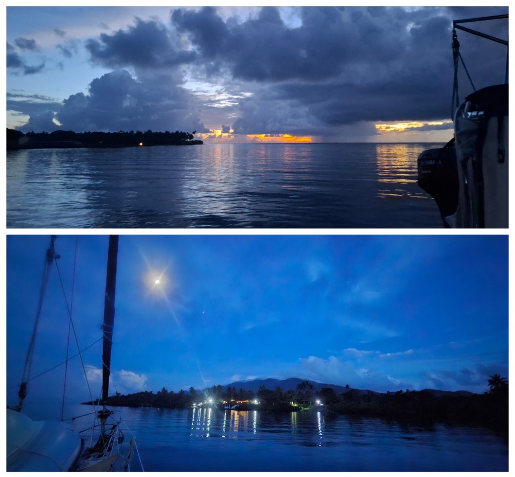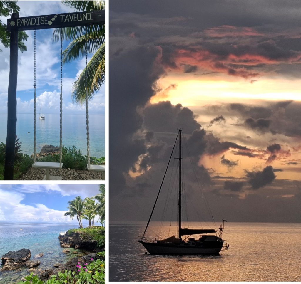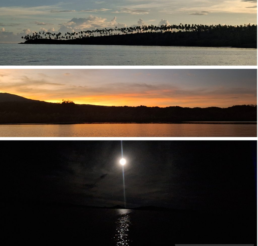 We raised the main sheet and the Jib for some time, combined with motoring to reach our first destination of Anchorage in a lovely bay just across “Paradise Taveuni Resort”. My first 41 miles of sailing the Pacific ended with a magical sunset over a great meal.