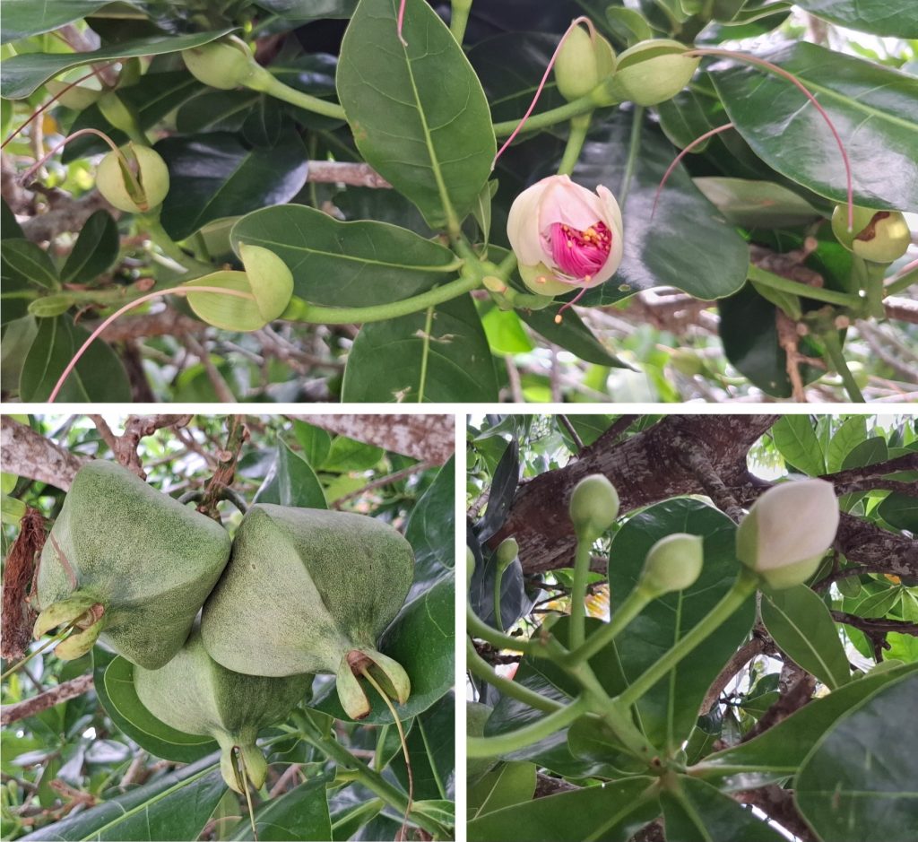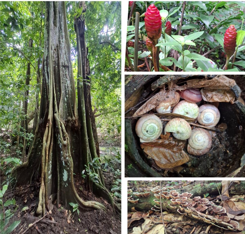 Taking the upper path this time, as the lower one was covered with water due to the tide I found my way through. As this trail goes slightly more inland it was kind of confusing sometimes. That’s where I got wrong! The bushes got higher, banana trees and pineapple plants showed me a small, muddy path through farmland. I kept going. Sweating along, the mosquitoes soon found me.